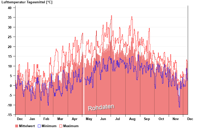 | Date | Mean value [°C] | Maximum [°C] | Minimum [°C] |