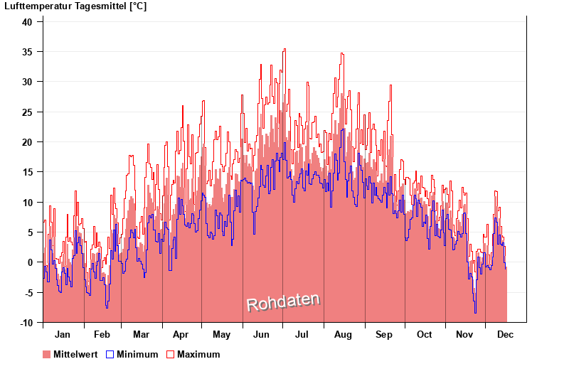 | Date | Mean value [°C] | Maximum [°C] | Minimum [°C] |