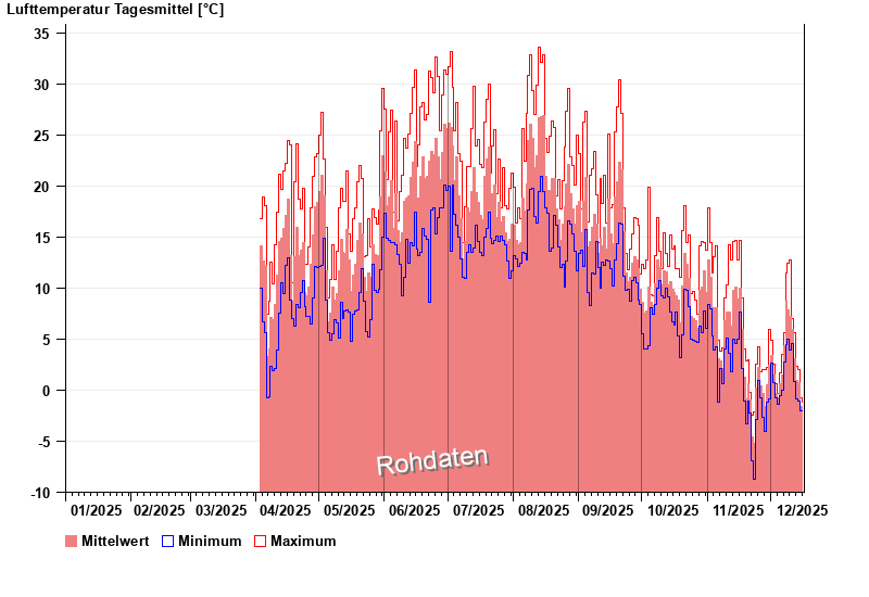 | Date | Mean value [°C] | Maximum [°C] | Minimum [°C] |