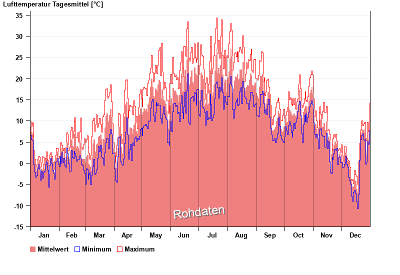 | Date | Mean value [°C] | Maximum [°C] | Minimum [°C] |