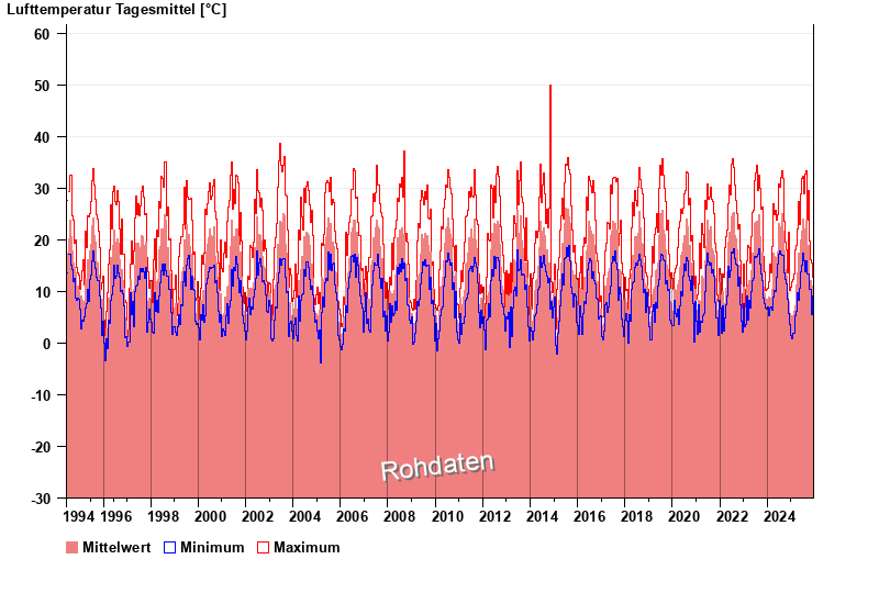 | Date | Mean value [°C] | Maximum [°C] | Minimum [°C] |