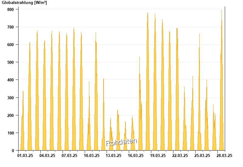 Global radiation from 01.03.2025 to 28.03.2025