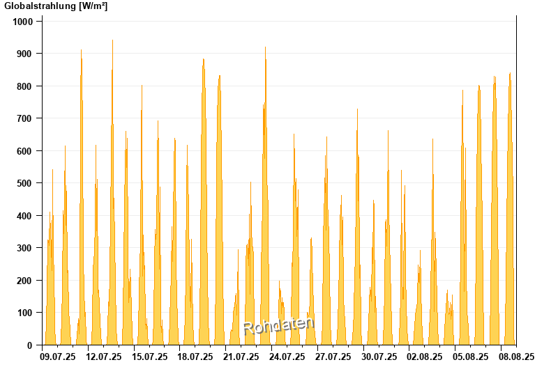 Global radiation from 09.07.2025 to 08.08.2025