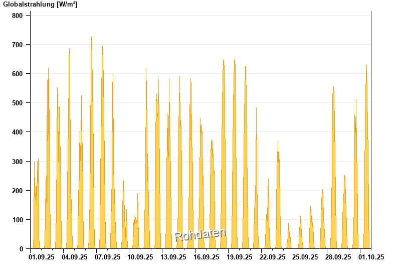Global radiation from 01.09.2025 to 01.10.2025