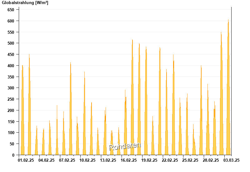 Global radiation from 01.02.2025 to 03.03.2025