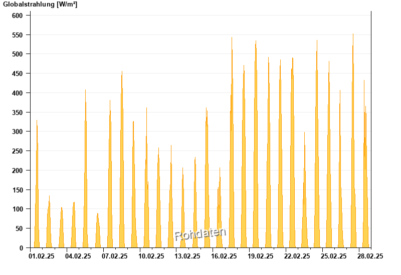 Global radiation from 01.02.2025 to 28.02.2025