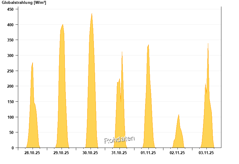 Global radiation from 28.10.2025 to 03.11.2025