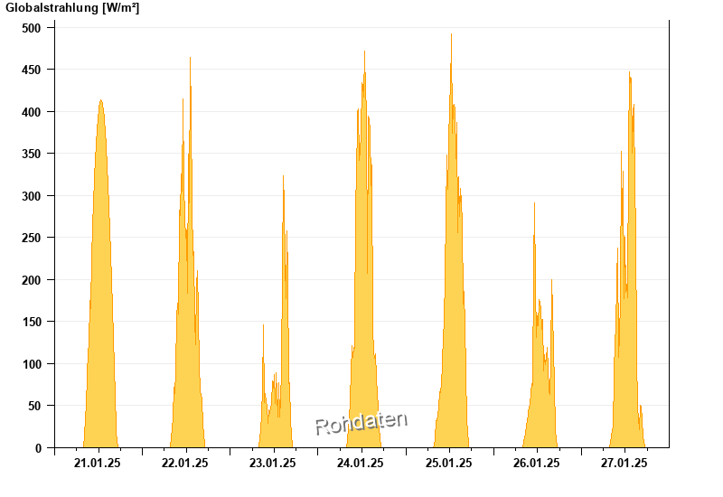 Global radiation from 21.01.2025 to 27.01.2025