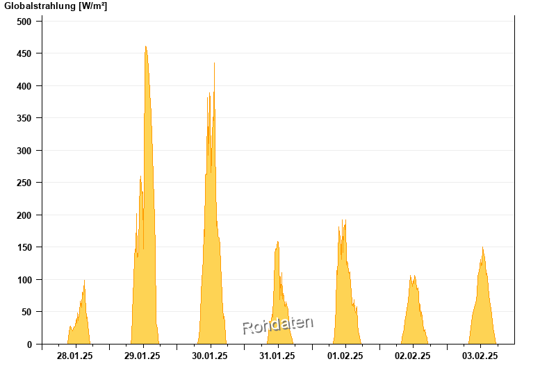 Global radiation from 28.01.2025 to 03.02.2025