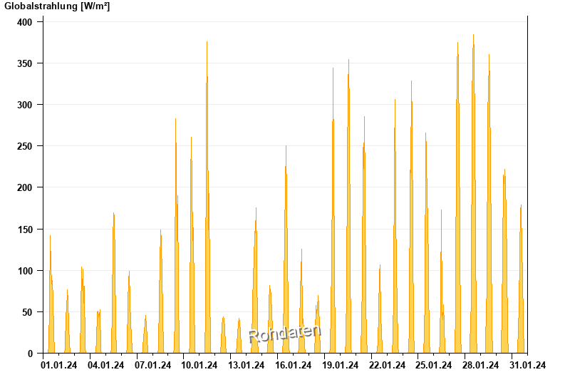Global radiation from 01.01.2024 to 31.01.2024