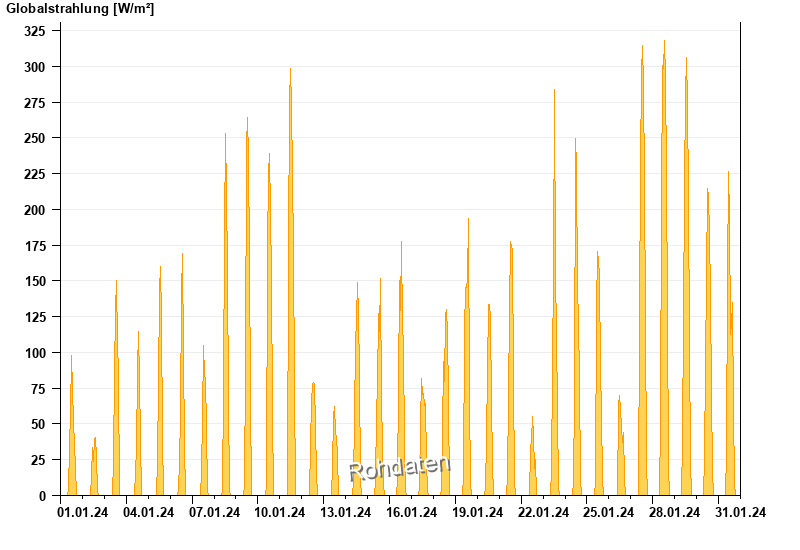 Global radiation from 01.01.2024 to 31.01.2024