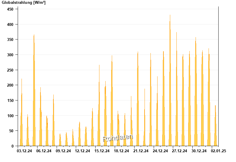 Global radiation from 03.12.2024 to 02.01.2025