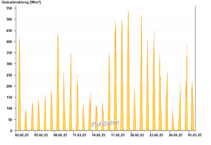 Global radiation from 02.02.2025 to 01.03.2025