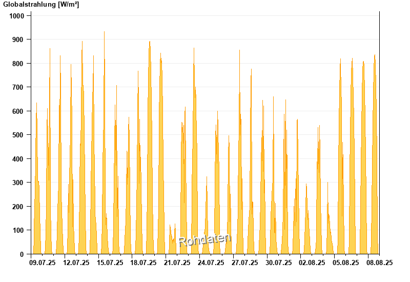 Global radiation from 09.07.2025 to 08.08.2025