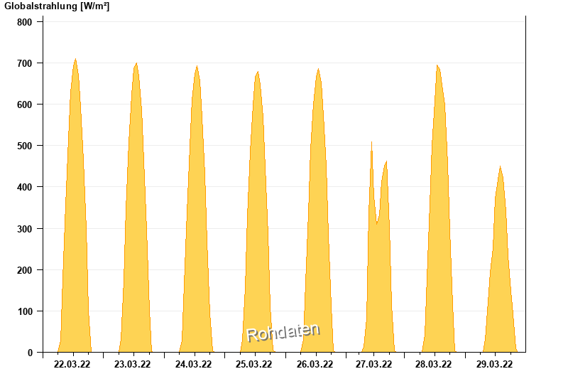 Global radiation from 22.03.2022 to 29.03.2022