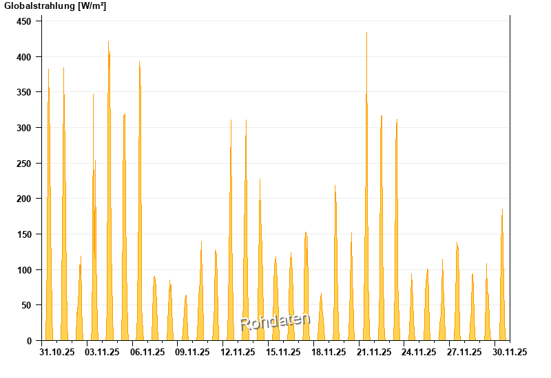 Global radiation from 31.10.2025 to 30.11.2025