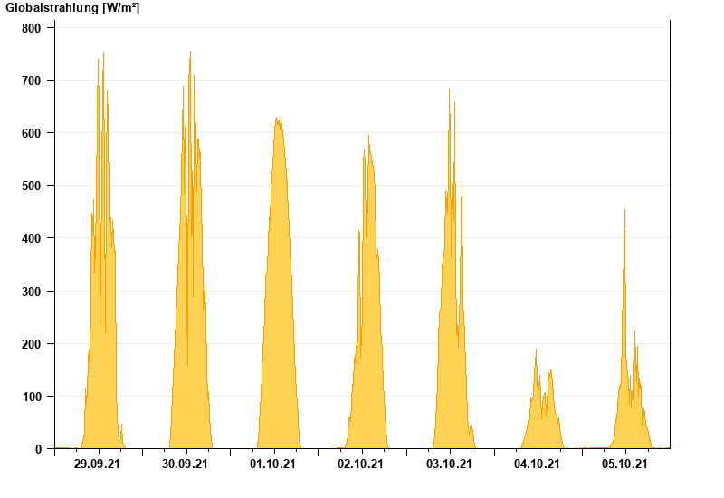 Global radiation from 29.09.2021 to 05.10.2021