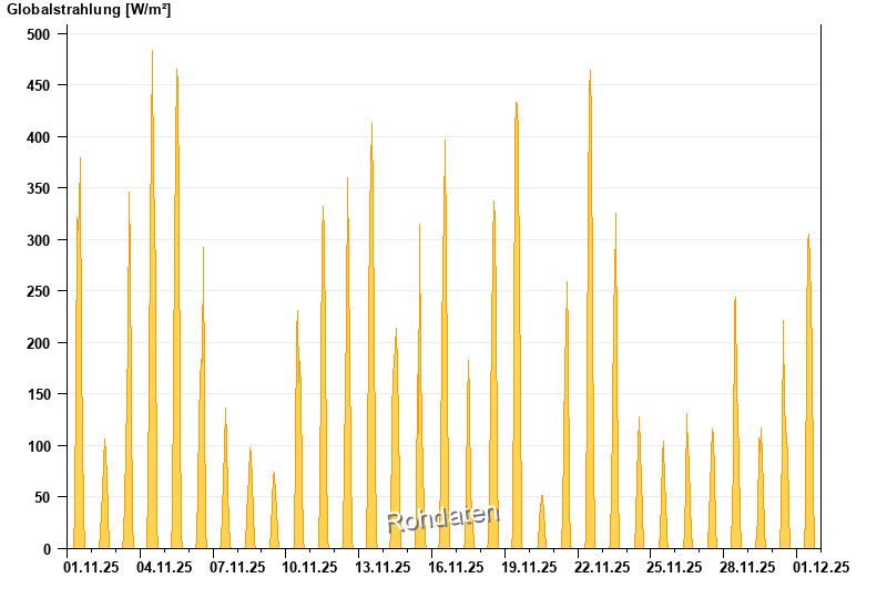 Global radiation from 01.11.2025 to 01.12.2025