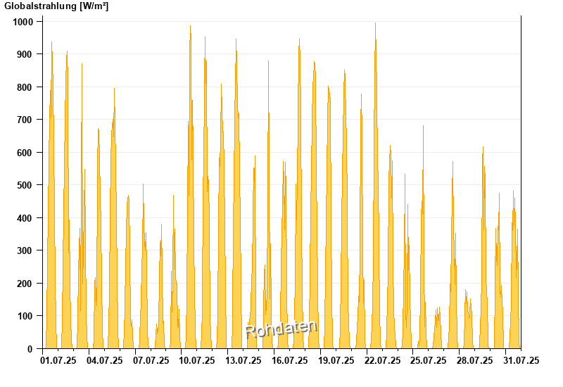 Global radiation from 01.07.2025 to 31.07.2025