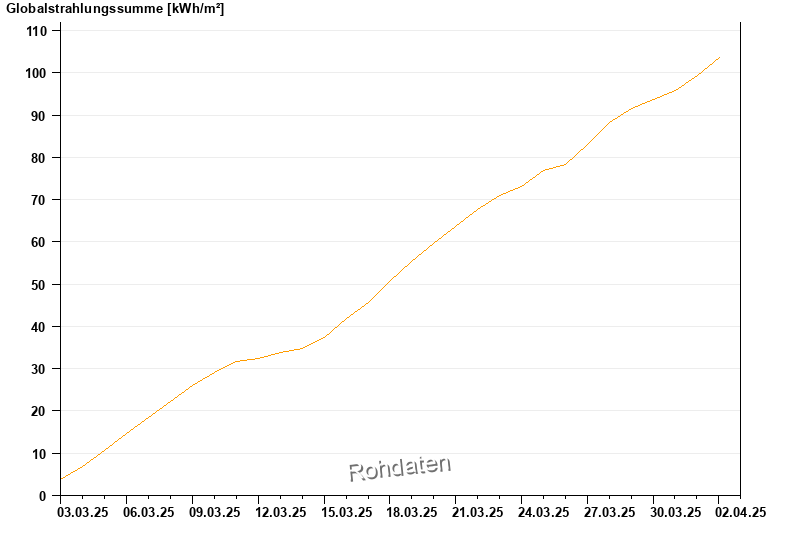 Global radiation from 03.03.2025 to 02.04.2025
