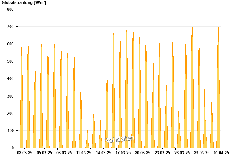Global radiation from 02.03.2025 to 01.04.2025