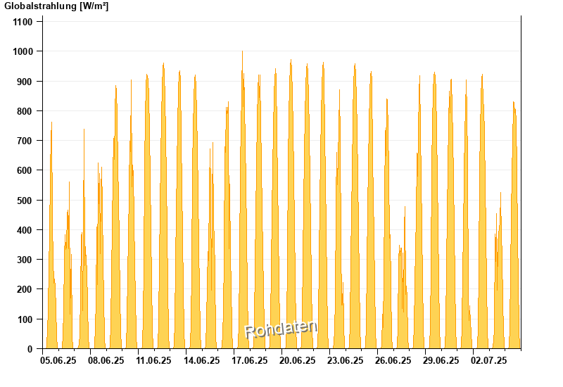 Global radiation from 05.06.2025 to 04.07.2025