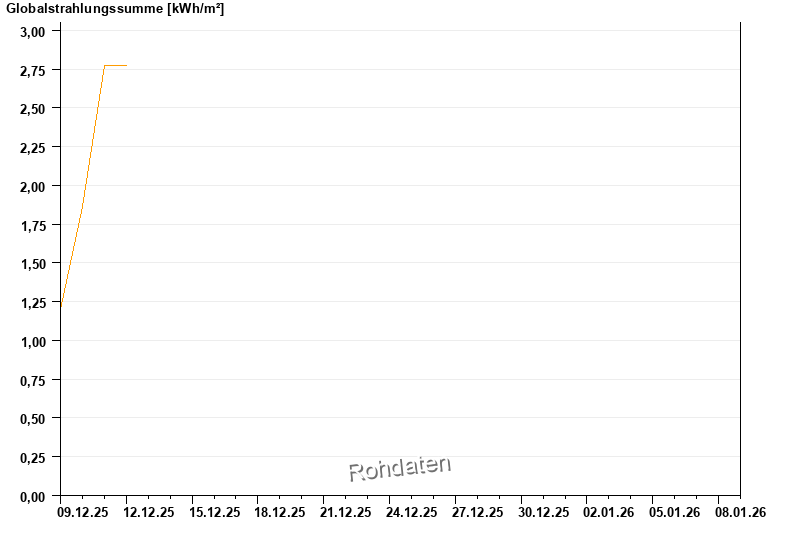 Global radiation from 09.12.2025 to 08.01.2026