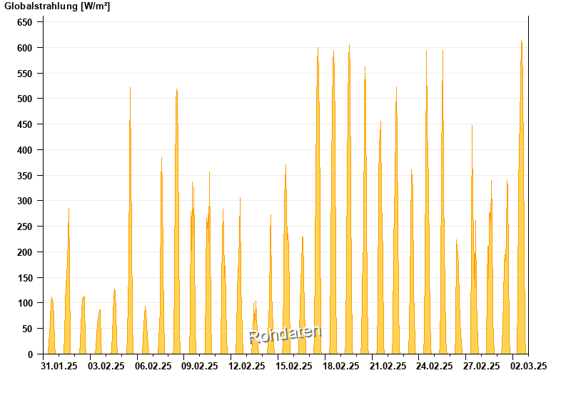 Global radiation from 31.01.2025 to 02.03.2025