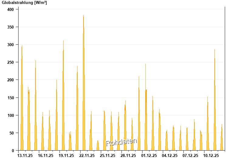 Global radiation from 13.11.2025 to 12.12.2025