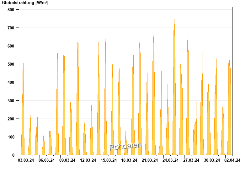 Global radiation from 03.03.2024 to 02.04.2024