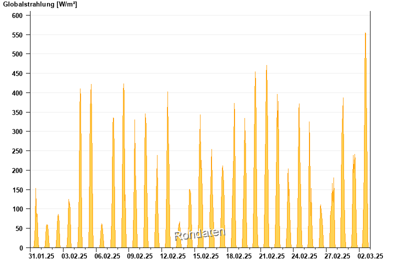 Global radiation from 31.01.2025 to 02.03.2025