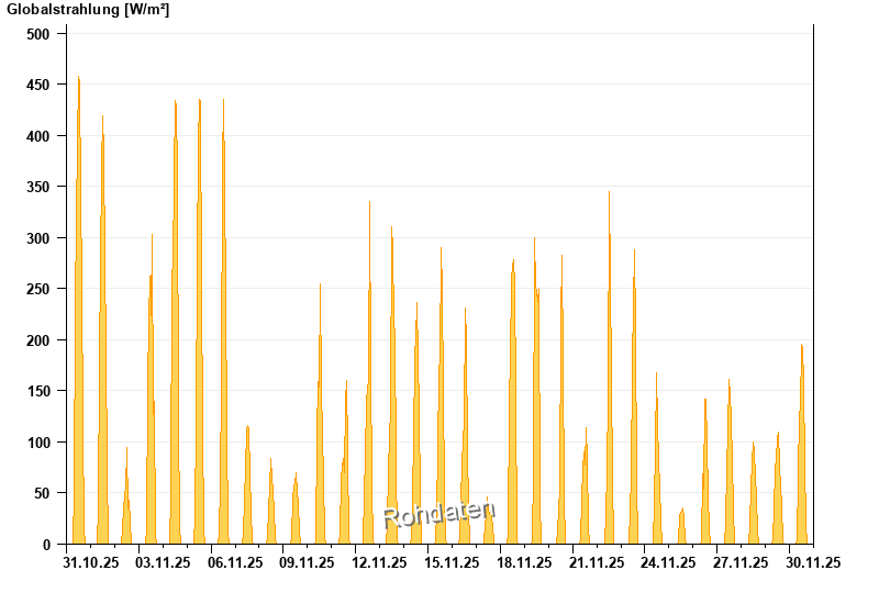 Global radiation from 31.10.2025 to 30.11.2025