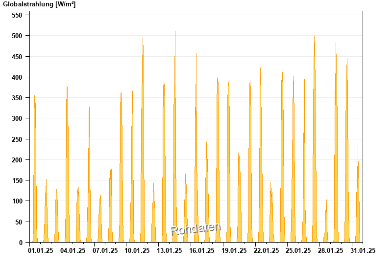 Global radiation from 01.01.2025 to 31.01.2025