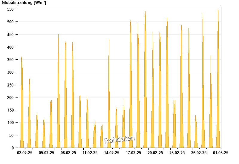 Global radiation from 02.02.2025 to 01.03.2025