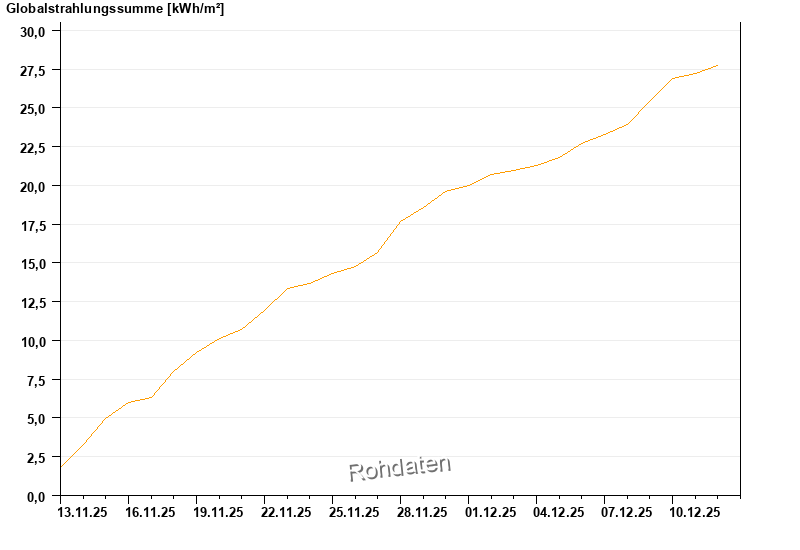 Global radiation from 13.11.2025 to 12.12.2025