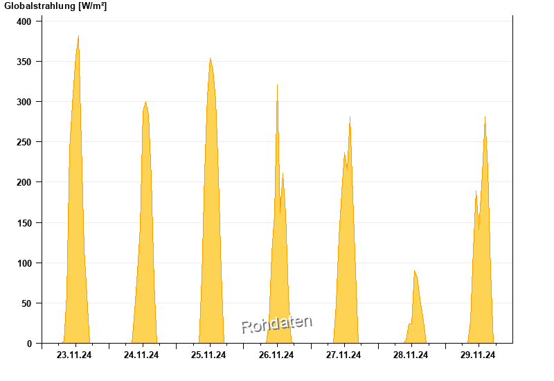 Global radiation from 23.11.2024 to 29.11.2024