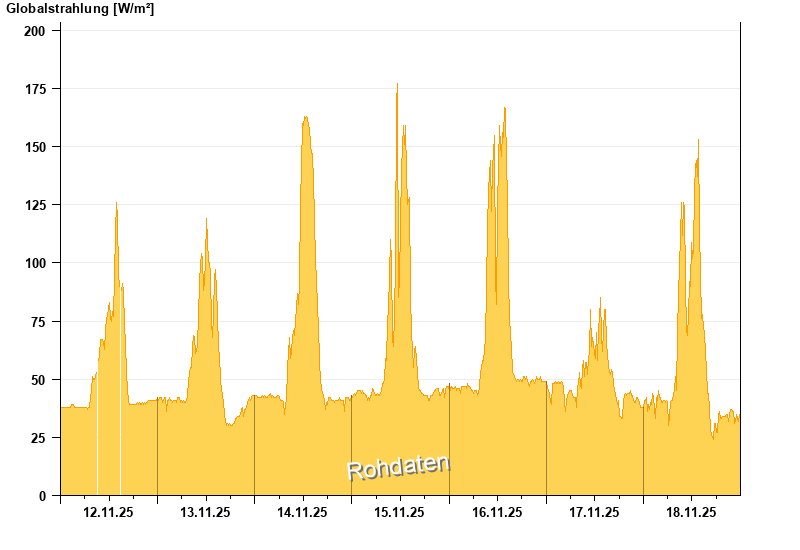 Starkes Rauschen der Strahlungswerte in der Nacht.