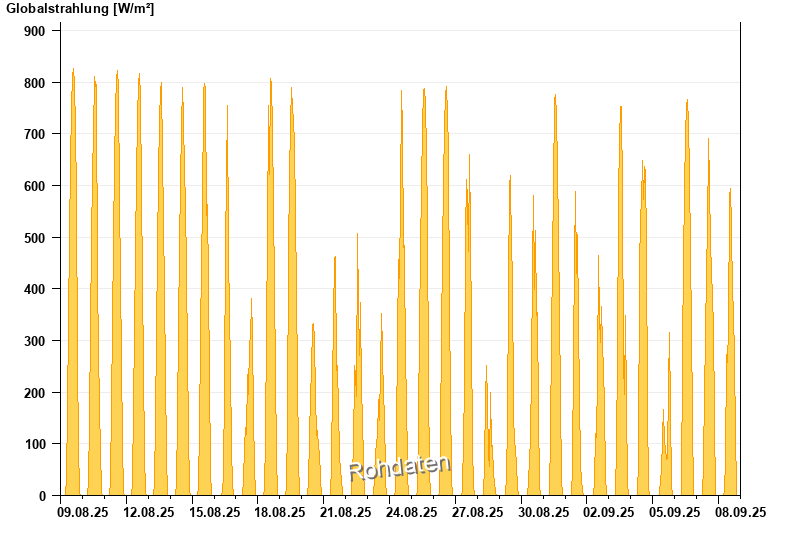 Global radiation from 09.08.2025 to 08.09.2025