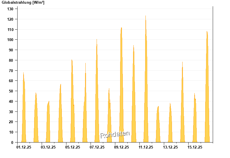 Global radiation from 01.12.2025 to 16.12.2025