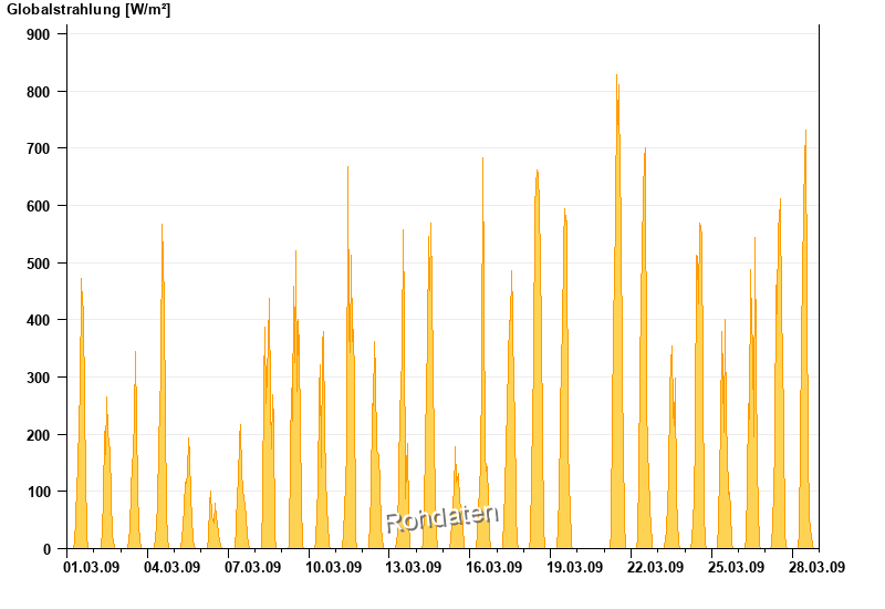 Global radiation from 01.03.2009 to 28.03.2009