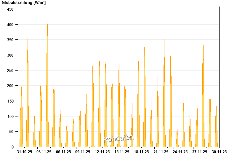 Global radiation from 31.10.2025 to 30.11.2025