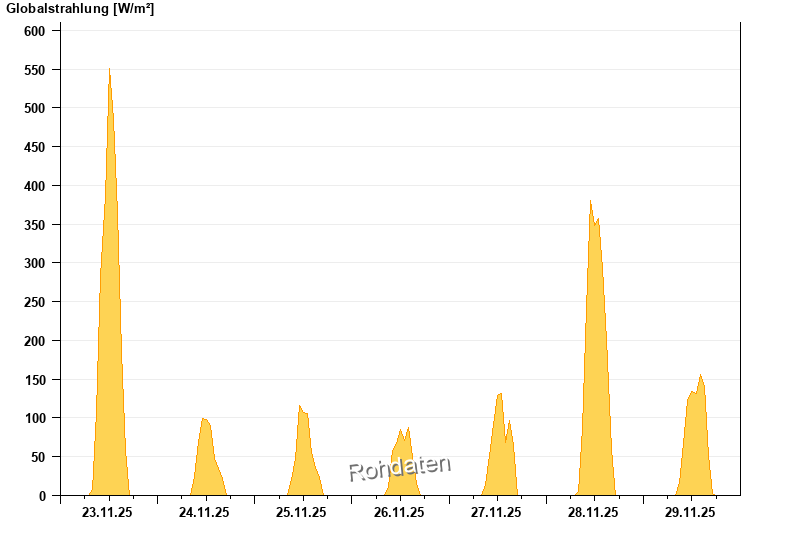 Global radiation from 23.11.2025 to 29.11.2025