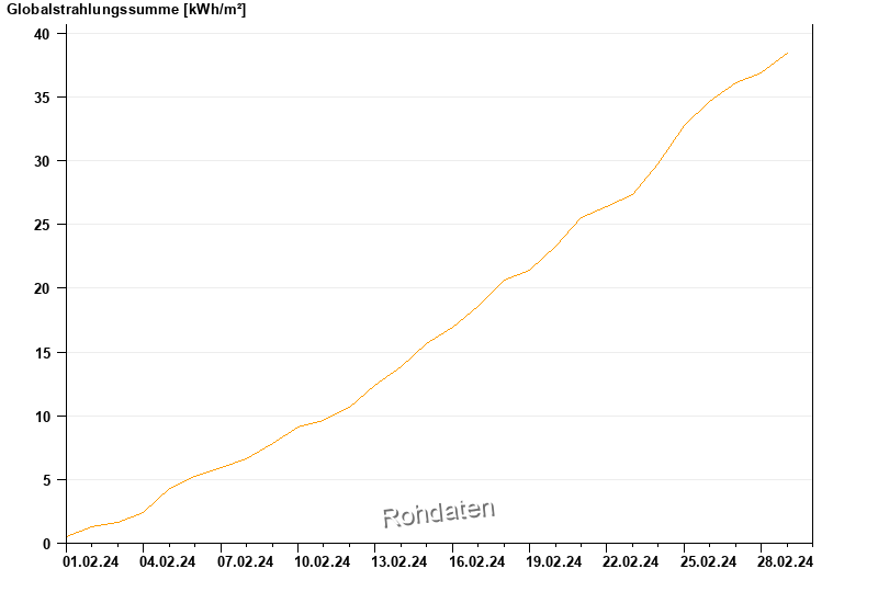 Global radiation from 01.02.2024 to 29.02.2024