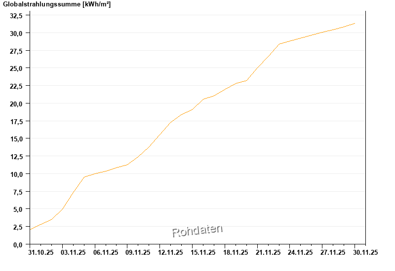 Global radiation from 31.10.2025 to 30.11.2025
