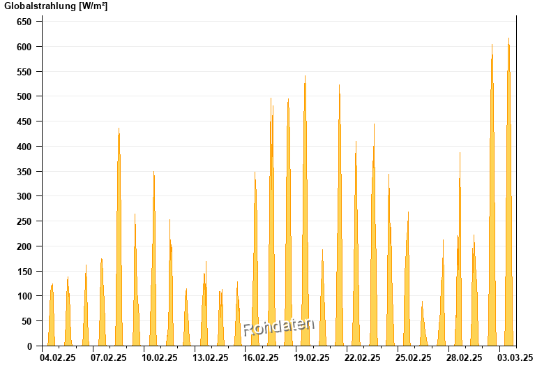 Global radiation from 04.02.2025 to 03.03.2025