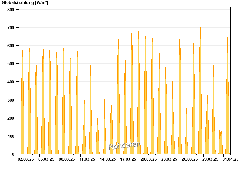 Global radiation from 02.03.2025 to 01.04.2025