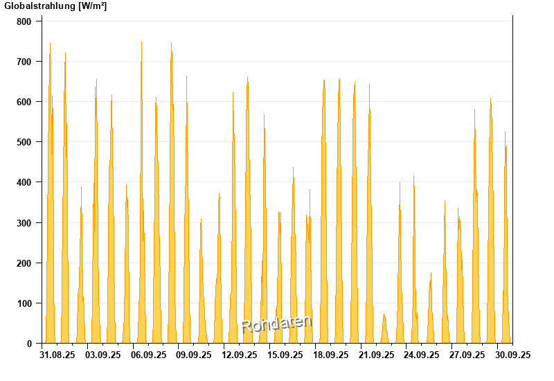 Global radiation from 31.08.2025 to 30.09.2025