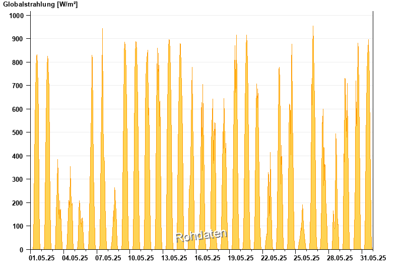 Global radiation from 01.05.2025 to 31.05.2025