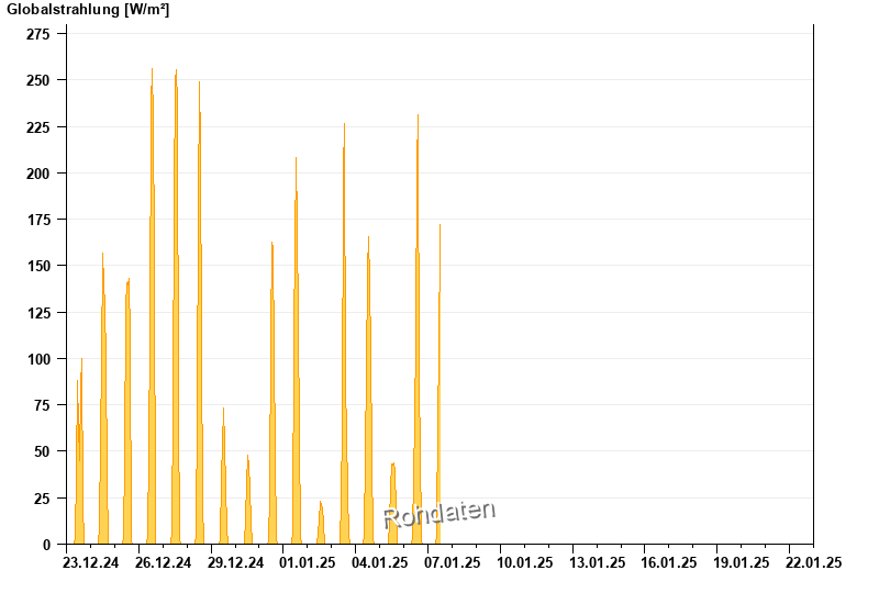 Global radiation from 23.12.2024 to 22.01.2025
