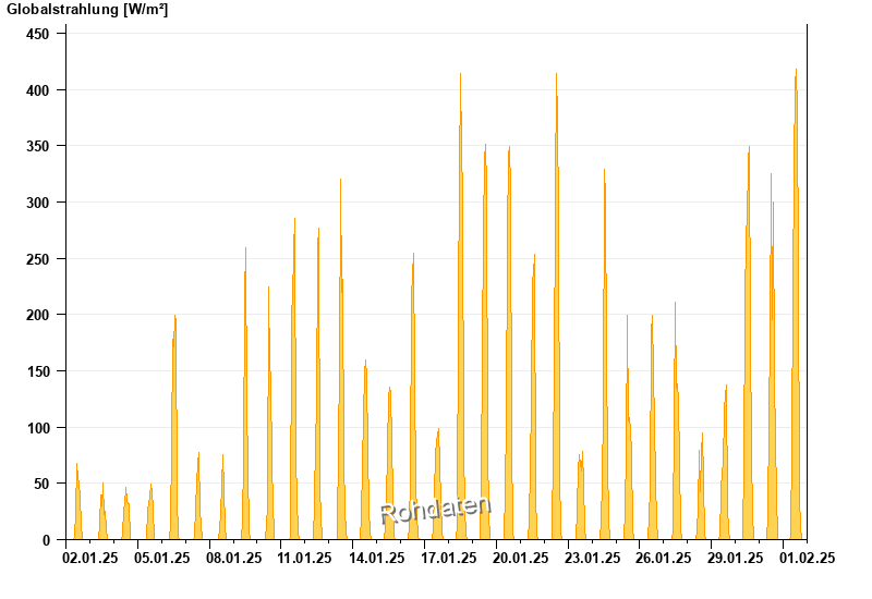 Global radiation from 02.01.2025 to 01.02.2025